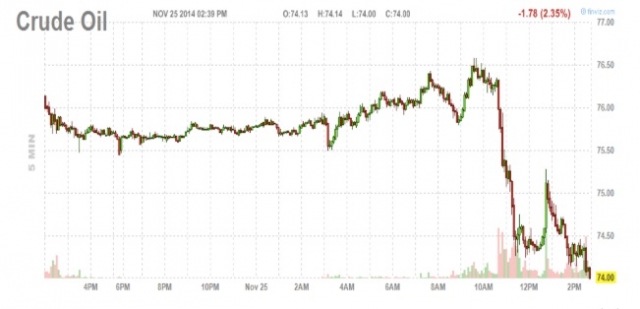 OPEC代表周四表示,OPEC决定保持石油生产目标在3000万桶/日不变。因OPEC决定不减产,油价暴跌,WTI原油收盘暴跌6.74%,收报72.84美元,盘中更下跌8%,下破68美元。布...